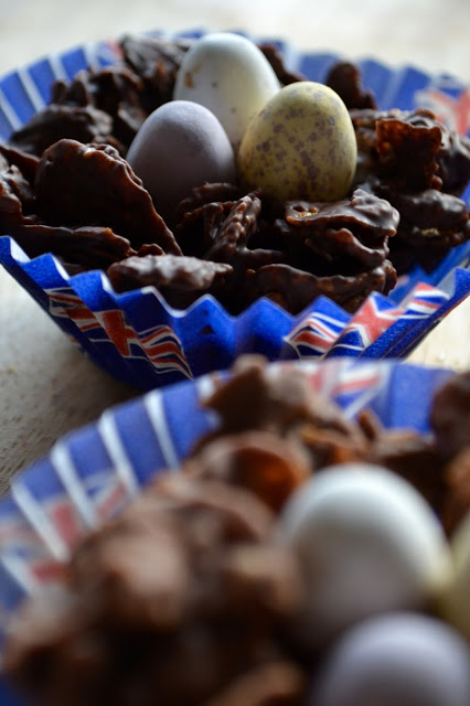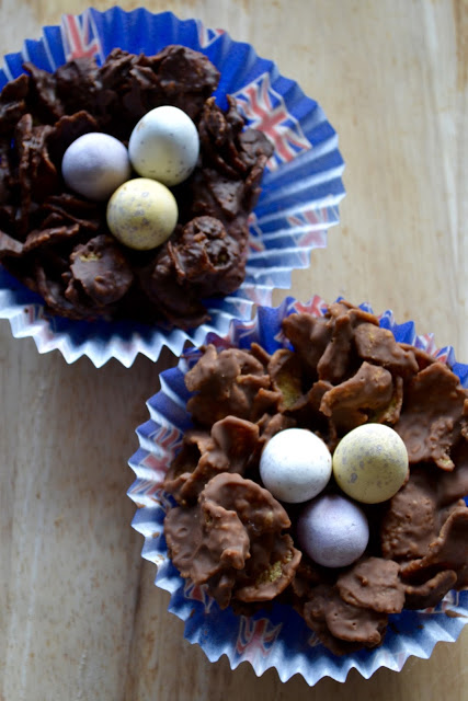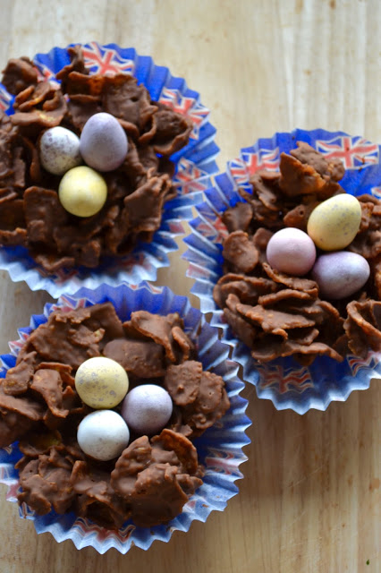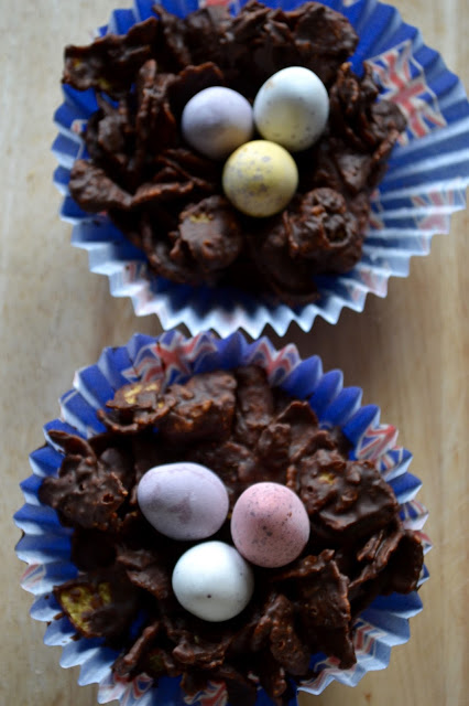 I always finished the nests off with Cadbury’s Mini Eggs but chocolate and yoghurt coated nuts would make a great addition.